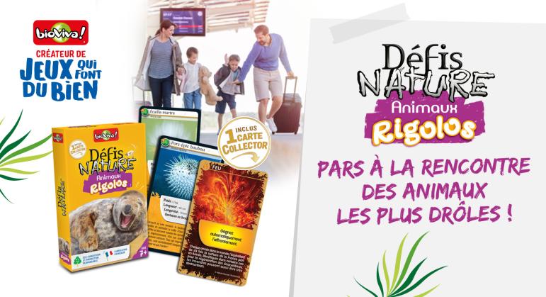 Cette fois-ci, les enfants qui voyagent au départ de 10 gares françaises* avec le service Junior & Cie se verront offrir un jeu Défis Nature Animaux rigolos. Avec ce jeu de cartes, ils découvrent les espèces à préserver, puis parient sur les points forts de leurs animaux pour collecter toutes les cartes du jeu et remporter la partie.