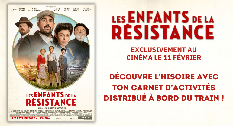 Avec Junior & Cie, à bord, chaque enfant recevra un carnet d'activités exclusif LES ENFANTS DE LA RESISTANCE, rempli de jeux, énigmes et défis pour prolonger l'aventure et rendre le voyage encore plus amusant.